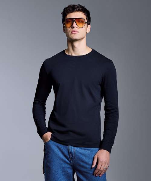 Solid colours are 100% organic cotton. Marl colours 60% cotton and 40% recycled polyester. 32's cotton count. Retail fashion fit. Soft-feel finish. Ribbed crew neck. Twin-needling detailing on shoulders and around back of neck. Cut and sew one by one ribbed cuff. Grown-on hem with twin-needle stitch. Mitred vent to both sides of t-shirt. Self-coloured neck size label.