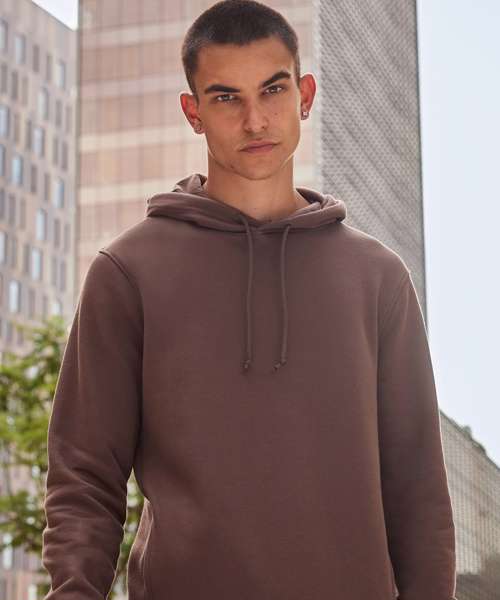 Trendy organic hooded sweatshirt with retail fashion oriented look and feel. Strong styling with great fitting and perfect length. Pockets placed in side seams to allow maximum front decoration surface area. Side seams ensure the best fit and a masculine silhouette. Visible "Hi! I'm Organic" neck tab to highlight the organic value of the garment. Easy branding solution - B&C Band No label solution. Inside single Jersey halfmoon in back to allow easy branding personalisation. Retail like features: single Jersey lined hood, qualitative herringbone neck tape and fashionable drawcord.