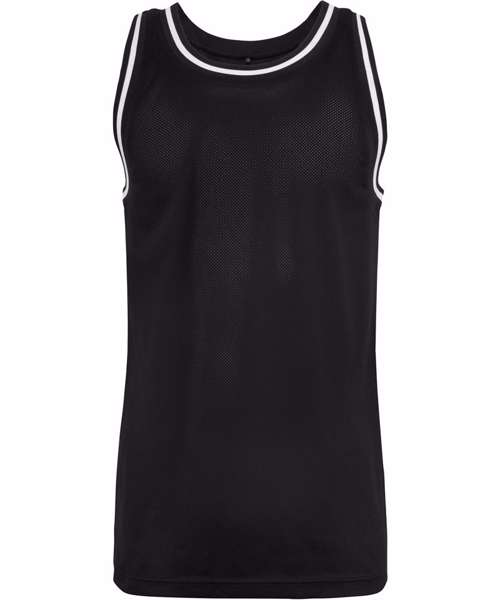 Polyester mesh. Neutral size label without branding, neck print possible. Two coloured rib cuff at the arm and neck opening. Double seams at the hem. Long cut.