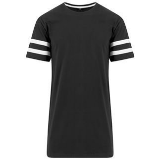 The trendy double stripes of the stripe Jersey tee from Build Your Brand come in contrast colours and fashionable attached herringbone tapes. The soft single Jersey and casual cut ensure a comfortable fit. This product is ideal for rebranding, print and embroidery. Oeko-Tex certified.