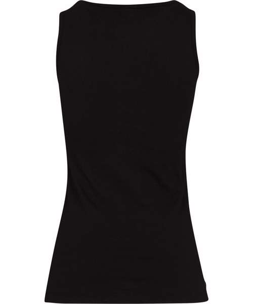 Tank top, sleeveless, low round neck, cuffs at hem, neckline and armholes.
