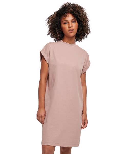 This casual basic is the perfect combination of t-shirt and dress in cotton fabric and with overcut shoulders, it has a lovely soft shape. The mini stand-up collar and turn-up sleeves complete the stylish look. Ideal for screen and flex printing.