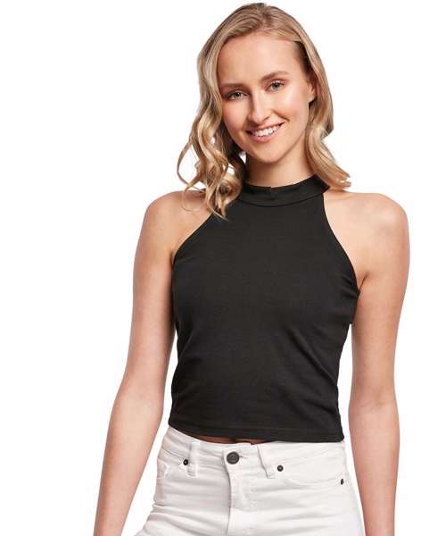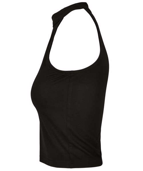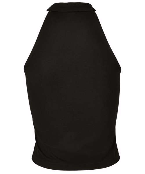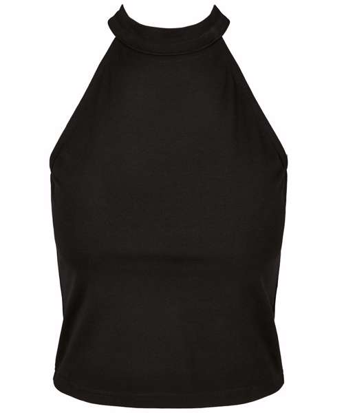 An exciting, sporty top that offers modern fit and high wearing comfort, thanks to the employed cotton-stretch material. Front and back are joined together by a light and sexy turtle neck, while the shoulders remain free, thus creating a wonderful look. Furthermore, the stylish short top is ready for further enhancement via flex or silk printing or by embroidery, if wished for.