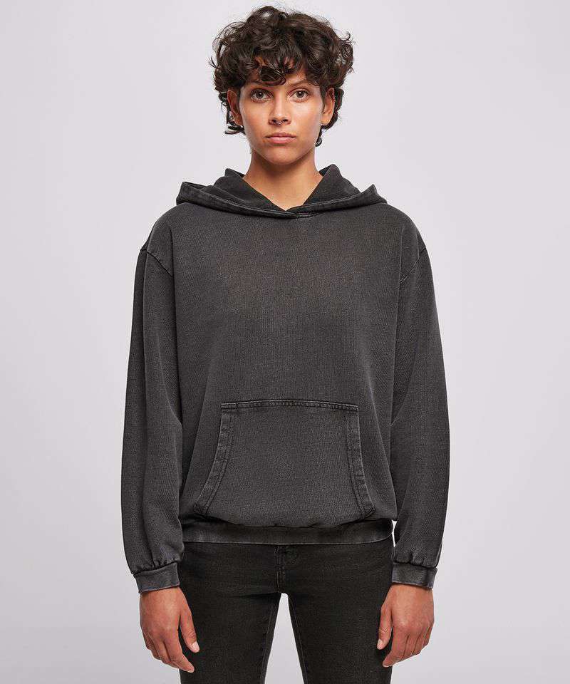 A women’s hoodie for the ultimate relaxed look. The acid washed cotton fabric ensures, from day one, that this cosy piece has the look and feel of a favourite hoodie. The oversized cut is accompanied by a hood and kangaroo pocket, with a great fit. It can also be personalised with printing or embroidery.