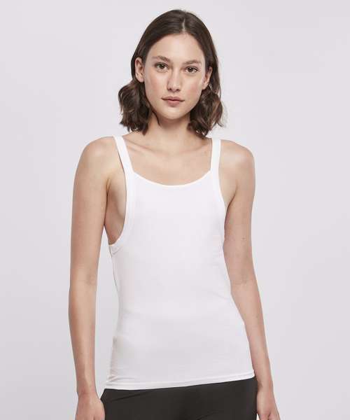This women’s tank top features an urban look with extra-deep armholes and yet a slim fit that clings closely to the figure. Its wide shoulder straps flow into deep necklines on the front and back. The summery, sporty women’s top is made from cotton with a slight percentage of elastane. It can be refined further via embroidery, flock printing or screen printing.