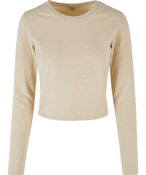 The easy-going women’s long sleeve is cropped, with a crew neck, and offers all the ingredients of a classic fashion staple. In a regular fit, the fabric is a supple mix of cotton and elastane, which can further be refined with print or branding/motifs via screen or flex printing.
