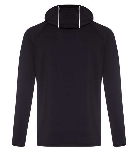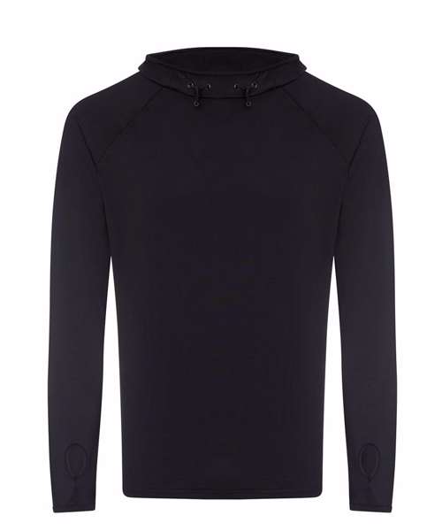 AWDis’ own CoolFit blended fabric containing elastane that provides stretch for comfort and a great fit. Cowl neck style hood. Sporty fit. Ideal for layering. Raglan sleeve design creates ease of movement. Reflective elements on hood for low light conditions. Reflective tab on back of neck helps keep ear phone cords in place. Toggled hood. Flat-lock stitching detail. Thumb hole opening. Simple tear off label makes it perfect for rebranding.