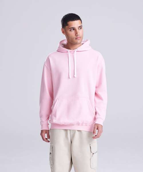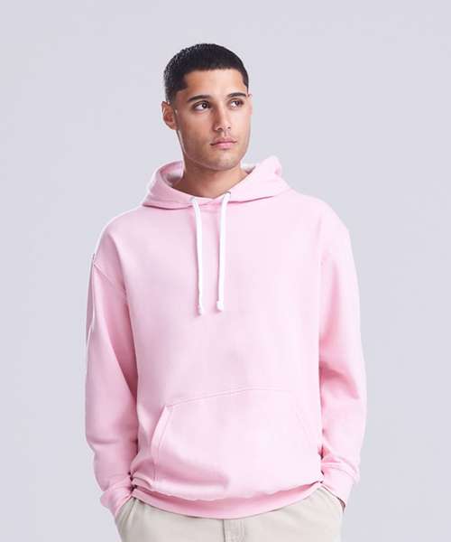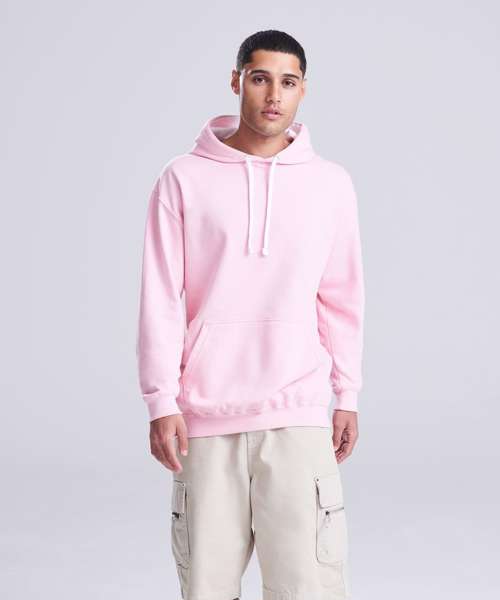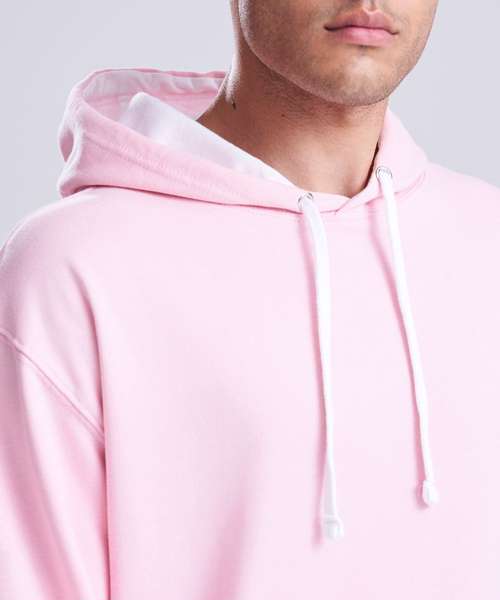 Twin needle stitching detailing, double fabric hood with contrast inner, contrast flat lace drawcords. Kangaroo pouch pocket. Ribbed cuff and hem. Soft cotton faced fabric creates ideal printing surface. Simple tear out label makes it perfect for rebranding. Brushed inner fabric.