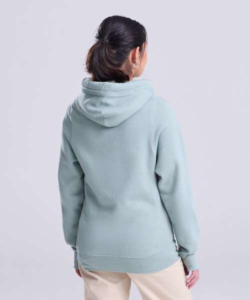 Heavyweight hoodie. Cross over neck detail. Twin needle stitching detail. Three panel double fabric hood. Flat lace drawcords. Kangaroo pouch pockets. Ribbed cuffs and hem. Soft cotton faced fabric created ideal printing surface. Simple tear out label makes it perfect for rebranding. Brushed inner fleece. Thumb holes in the cuffs.