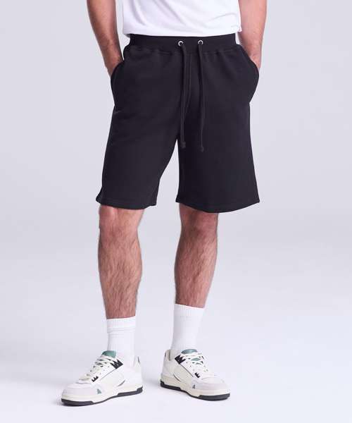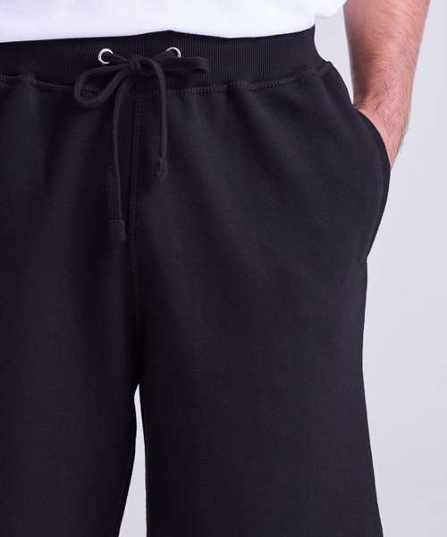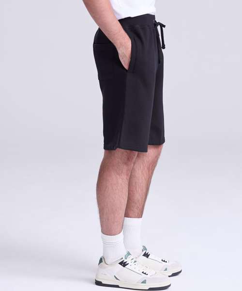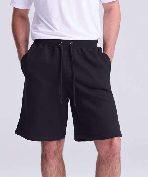 Heavyweight short. Side pockets. Single back patch pocket. Deep rib waistband with flat cream drawcord. Soft cotton faced fabric creates ideal printing surface. Simple tear out label makes it perfect for rebranding. Brushed inner fleece.