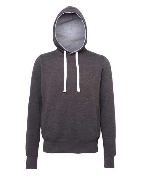Overlock stitching detail throughout. Double fabric hood with Heather Grey waffle fabric inner. Chunky white flat lace drawcords. Deep ribbed cuffs and hem. Soft cotton faced fabric creates ideal printing surface. Simple tear out label makes it prefect for rebranding. Side panels for stylish fit. Side pockets. Pull over Hoodie. Brushed inner fleece.