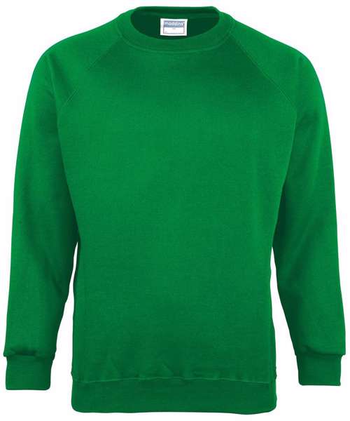 Easycare crew neck raglan sleeve sweatshirt with coverseam finish around neck, welt and raglan. Herringbone taped neck. Woven label.