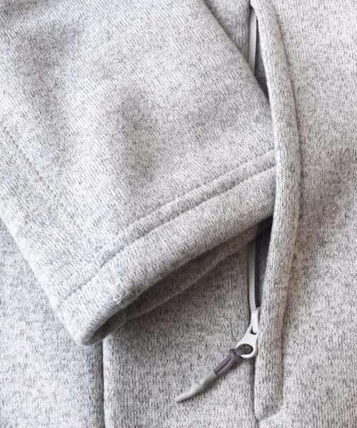 Rubber zip puller at side pockets. Chest pocket with hidden zipper. Bonded fleece in the inside.
