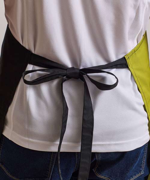 A classic full bib apron with a contrast coloured panel appearing along the length of the right hand side which can be an excellent branding solution. The colours used on this apron are part of the 'Colours Collection' from Premier. Featuring two slanted side pockets and useful adjustable buckle on the neckband.