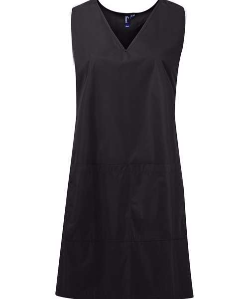 Waterproof and bleach resistant. Round neck. Double centre pocket. Flattering feminine fit measuring 86cm in length.