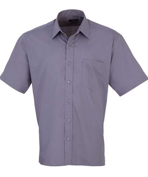 A short sleeved Poplin work shirt for men available in 30 colours from Premier's 'Colours Collection.' This classic fitting shirt has a stiffened formal cut collar that can accommodate a tie and the main body has a useful left breast pocket.
