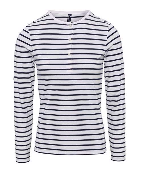 Long sleeve tee that has roll sleeve capabilities with button tab on the inside of the sleeve to secure in place. Round neck style with a three button placket. Twin-needle stitching to the hem and cuff.