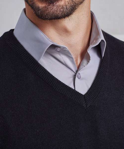 A simple easy-wearing sweater that adds layers of style to your outfit. Designed with ribbed knit set-in sleeves, hem line and v-neck for a contemporary modern look. A wardrobe essential for staff who need to maintain a smart corporate image at all times.