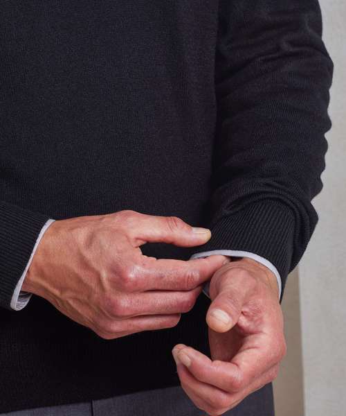 A simple easy-wearing sweater that adds layers of style to your outfit. Designed with ribbed knit set-in sleeves, hem line and v-neck for a contemporary modern look.