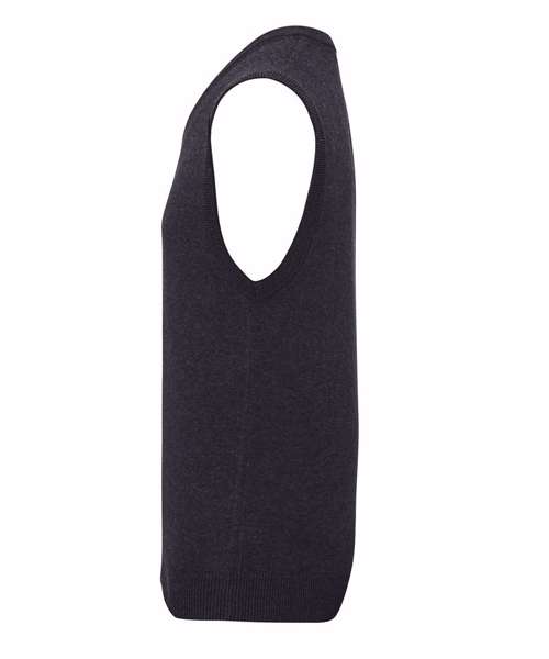 Cotton rich with a fine 12 gauge knit. Sleeveless with ribbed detail on the arm holes, v-neckline and hem.
