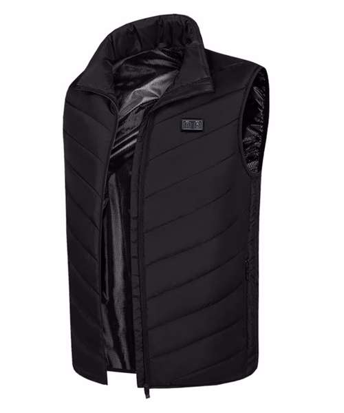 Heated padded gilet with five fast heating zones and three heat settings. Independent front and back heating zones. Soft and comfy. Includes pocket to store power bank. Connects to most power banks via USB-A (power bank not included).