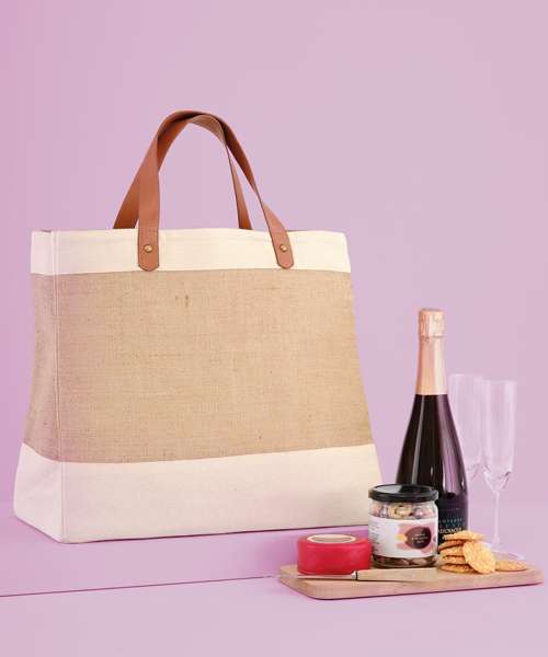 Meet your new go-to tote – a stylish blend of 100% jute and recycled cotton canvas with sleek faux leather accents. With generous space for logos, prints or bold designs, it’s your dream canvas. Designed with sturdy, comfortable straps, this tote isn’t just practical – it’s retail-ready. A perfect match for high-end boutiques, department stores and more!