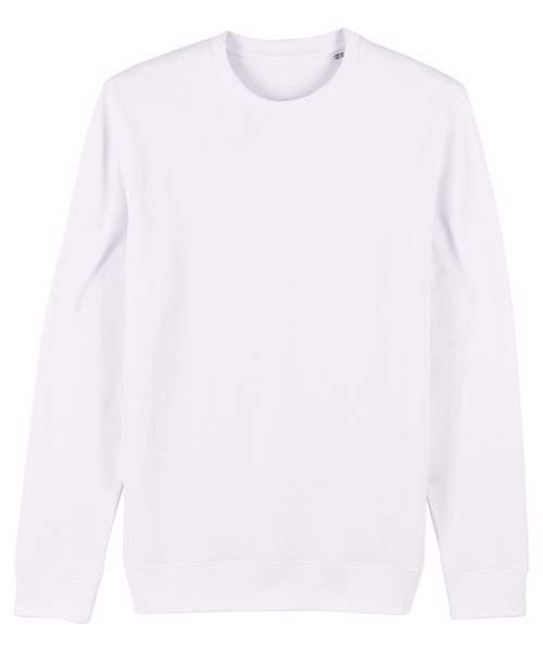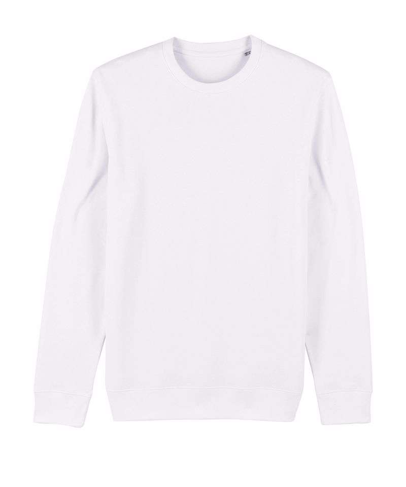 Set-in sleeve. 1x1 rib at neck collar, sleeve hem and bottom hem. Inside herringbone back neck tape. Self-fabric half-moon at back neck. Single-needle topstitch at neck collar. Armhole, sleeve hem and bottom hem with twin-needle topstitch. Unisex, medium fit, long sleeve, round-neck. 85% organic ringspun combed cotton, 15% recycled polyester. Brushed sweatshirt. Fabric washed, light sueded.