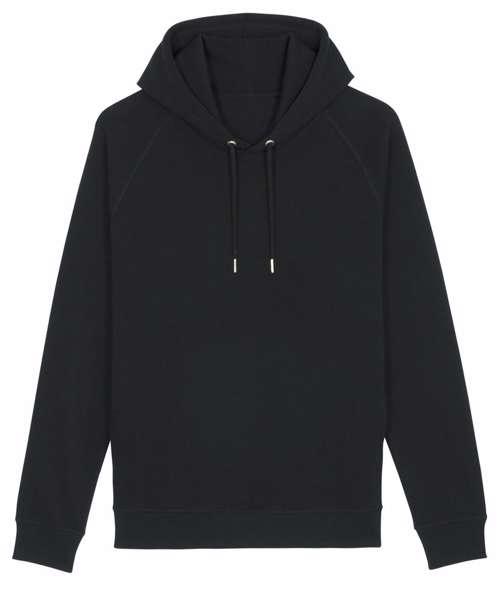 The raglan unisex hoodie sweatshirt in premium brushed 300gsm fleece, 85% organic cotton, and 15% recycled polyester. Featuring a double self-fabric hood lining which offers sturdy and durable wear, plus matt silver metal eyelets, and drawcord tipping. There is flatlock top-stitching, side pocket offering a bigger space for decoration and a half-moon at back neck.