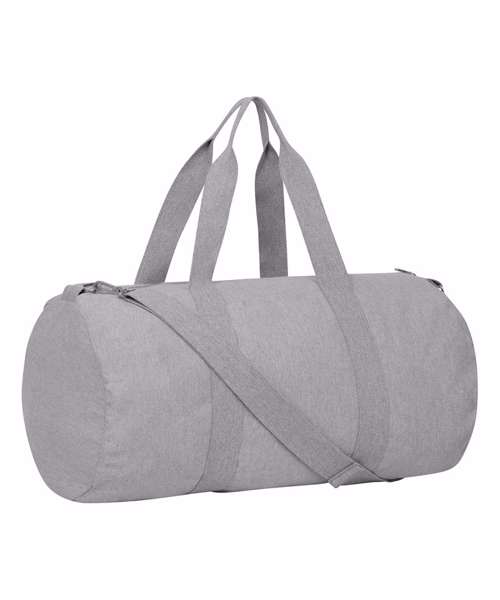Lightweight duffle bag made with super-soft 100% recycled polyester. The bag is fully lined. It has an inside zip pocket, outside pocket and detachable adjustable shoulder straps.