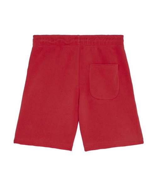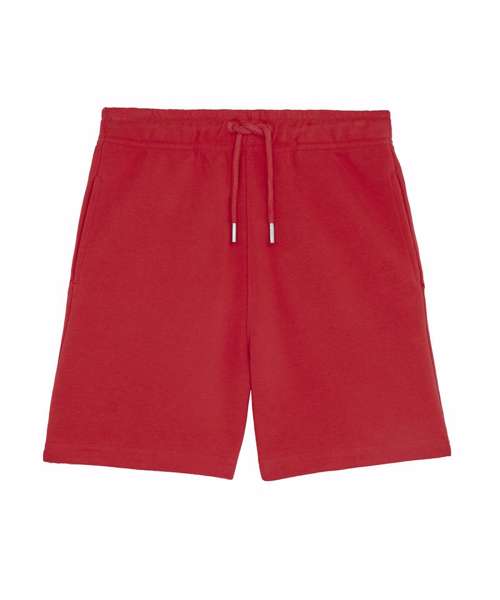 Kids jogger shorts. Self-fabric elastic waistband and round drawcords in matching body colour with metal tipping. Embroidered eyelets. Pockets at front. Patch pocket at back. Bottom hem with wide double-needle topstitch.