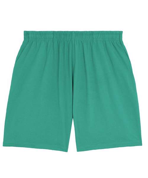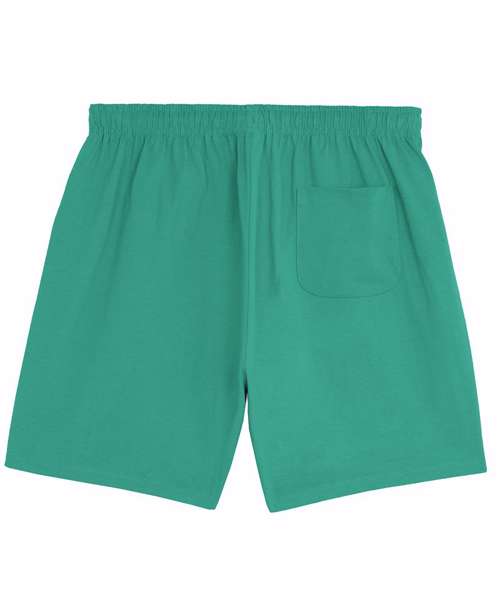 Unisex lightweight shorts with self-fabric elastic waistband. Hidden flat drawcords on the inside of the waistband. Pockets at the front and patch pockets at the back.