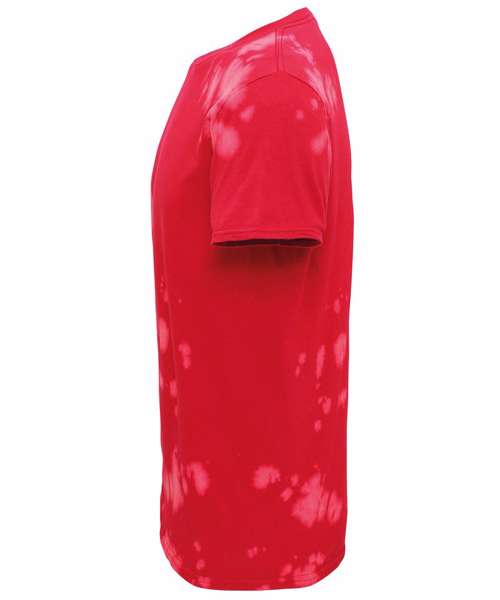 Short sleeved T made from ringspun cotton. 3 bold colours with bleach out detail.
