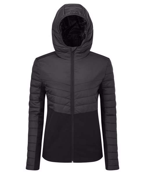 Stretchy shell panels on the sides and sleeves make this women’s TriDri® insulated hybrid jacket the perfect style for outdoor workouts. Lightweight, with quilted detailing, hybrids are designed to keep you warm by regulating body temperature. With internal storm flap and elasticated hood and sleeves, this jacket will protect you whilst training in the elements.