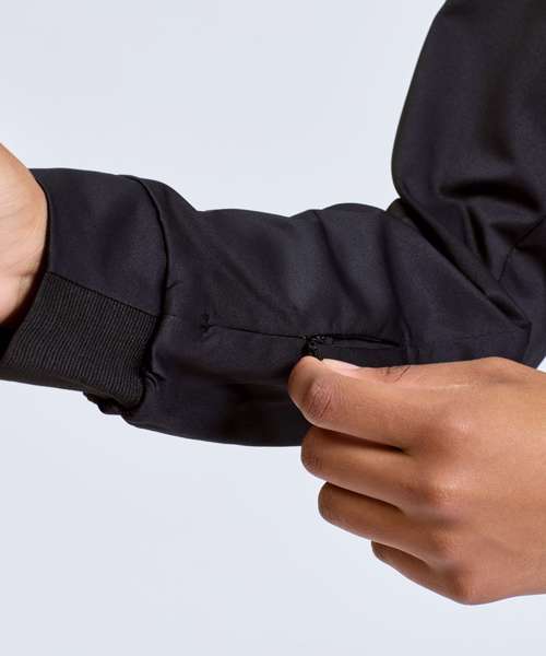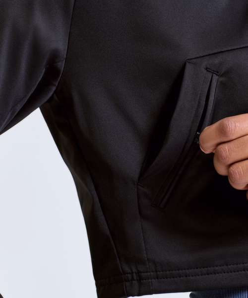 Lightweight cropped pull-over jacket. Kangaroo pocket to front with additional zip detailing for storing items like keys etc. Super-smooth finish to jacket. Cuffs half elasticated for additional detailing and trapping in warmth. Detailing to hood. We recommend using block out vinyl and inks.Product contains no branded neck or waist label. Removable Kimble or looped garment tags. Inner seam label holds important product information on one label with a second label containing brand information which can be cut-away.