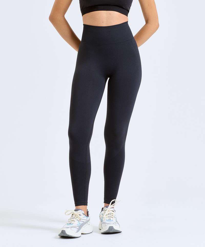 Flattering scrunch feature. Soft-stretch fabric. Seamless knit. Contour pattern. The product contains no branded neck or waist label. Removable kimble or looped garment tags. The inner seam label holds important product information on one label with a second label containing brand information which can be cut-away. We recommend using block out vinyl and inks.