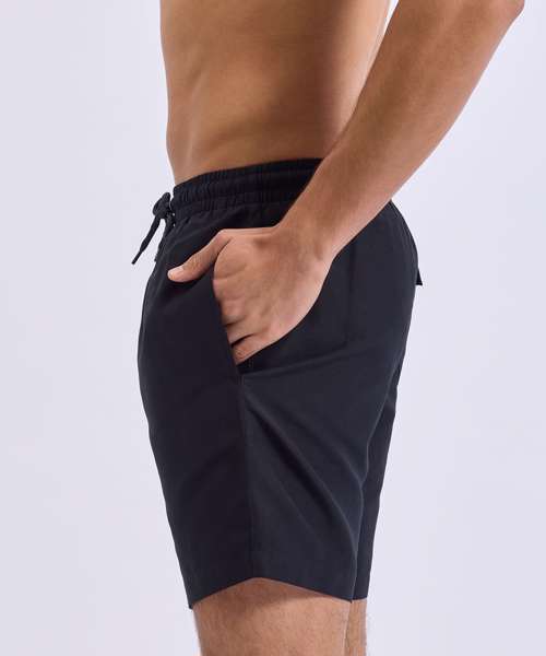 Pocket at rear with eyelet for water release. Hook and loop fastening on pocket. Forward facing swing pockets. Contrast mesh insert and drawcord. Gun metal eyelets on waist for drawcord. Elasticated waistband.